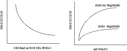 Al degradarse el suelo pierde capacidad de producción y cada vez hay que añadirle más cantidad de abonos para producir siempre cosechas muy inferiores a las que produciría el suelo si no se presentase degradado.