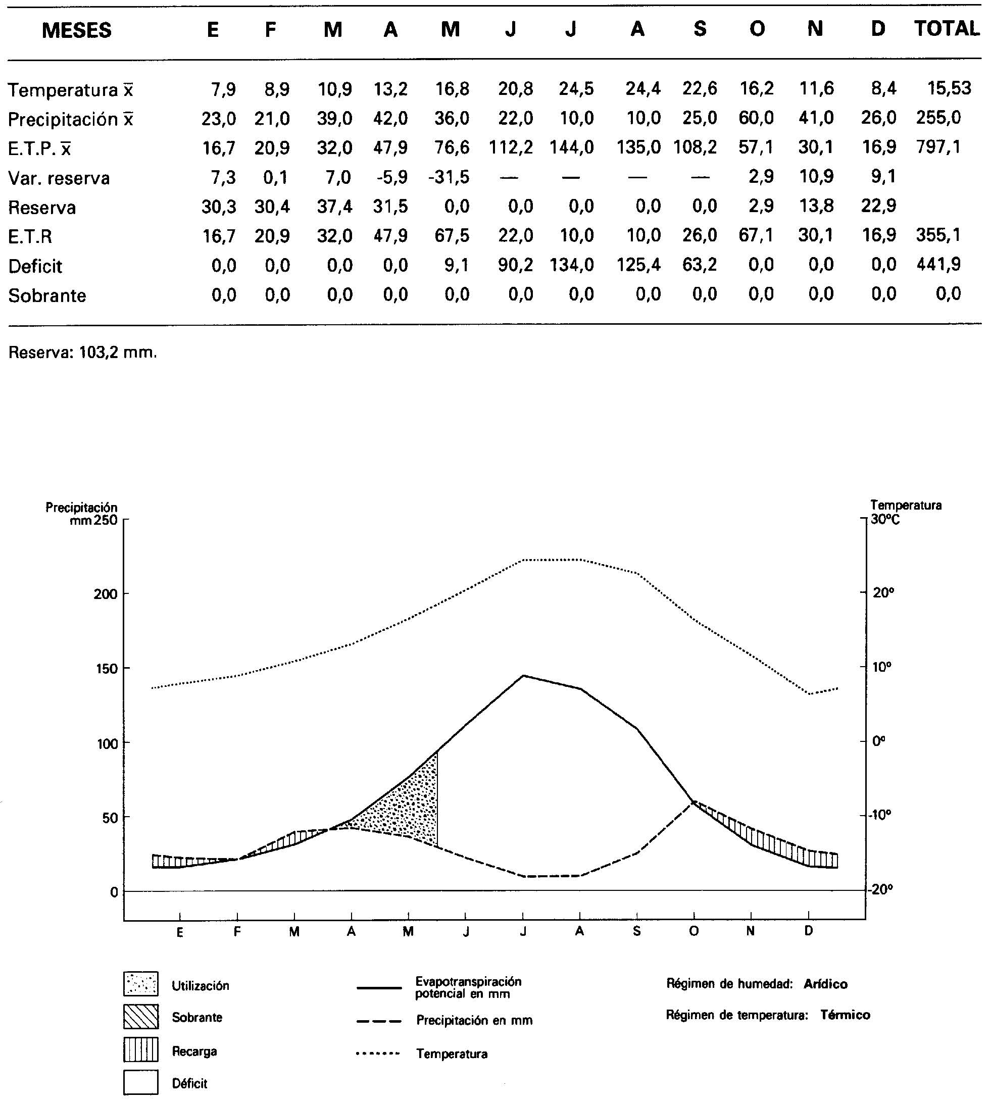 Estos suelos están prácticamente secos a lo largo de todo el año, excepto en los momentos siguientes a la lluvia, ya que presentan texturas gruesas y muy poco espesor, por lo que la capacidad de retención de agua útil alcanza valores bajos, se presentan como unidad propia así como componente de diversas Unidades, siempre en las zonas más abruptas de la Hoja.