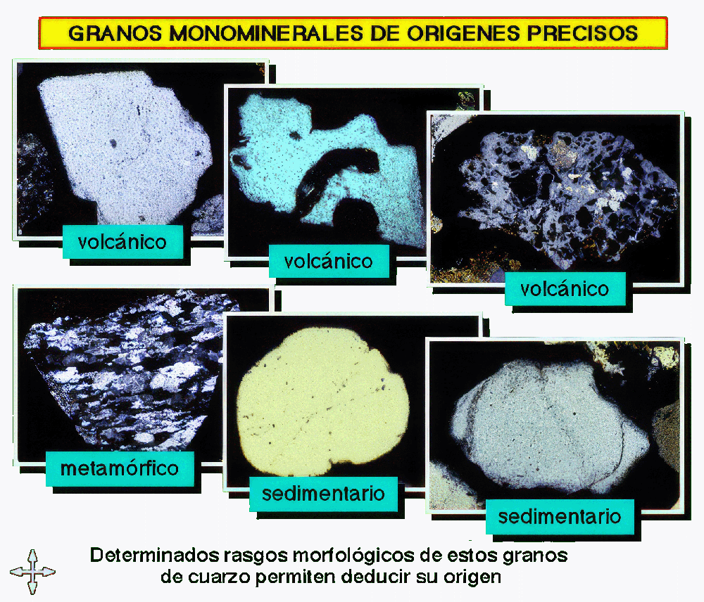 En ocasiones los granos de cuarzo son indicadores de un determinado origen petrológico (KRYNINE, 1946):