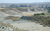 Rocas blandas de tamaño de partícula fino, que se erosionan fácilmente dando relieves suavemente alomados.