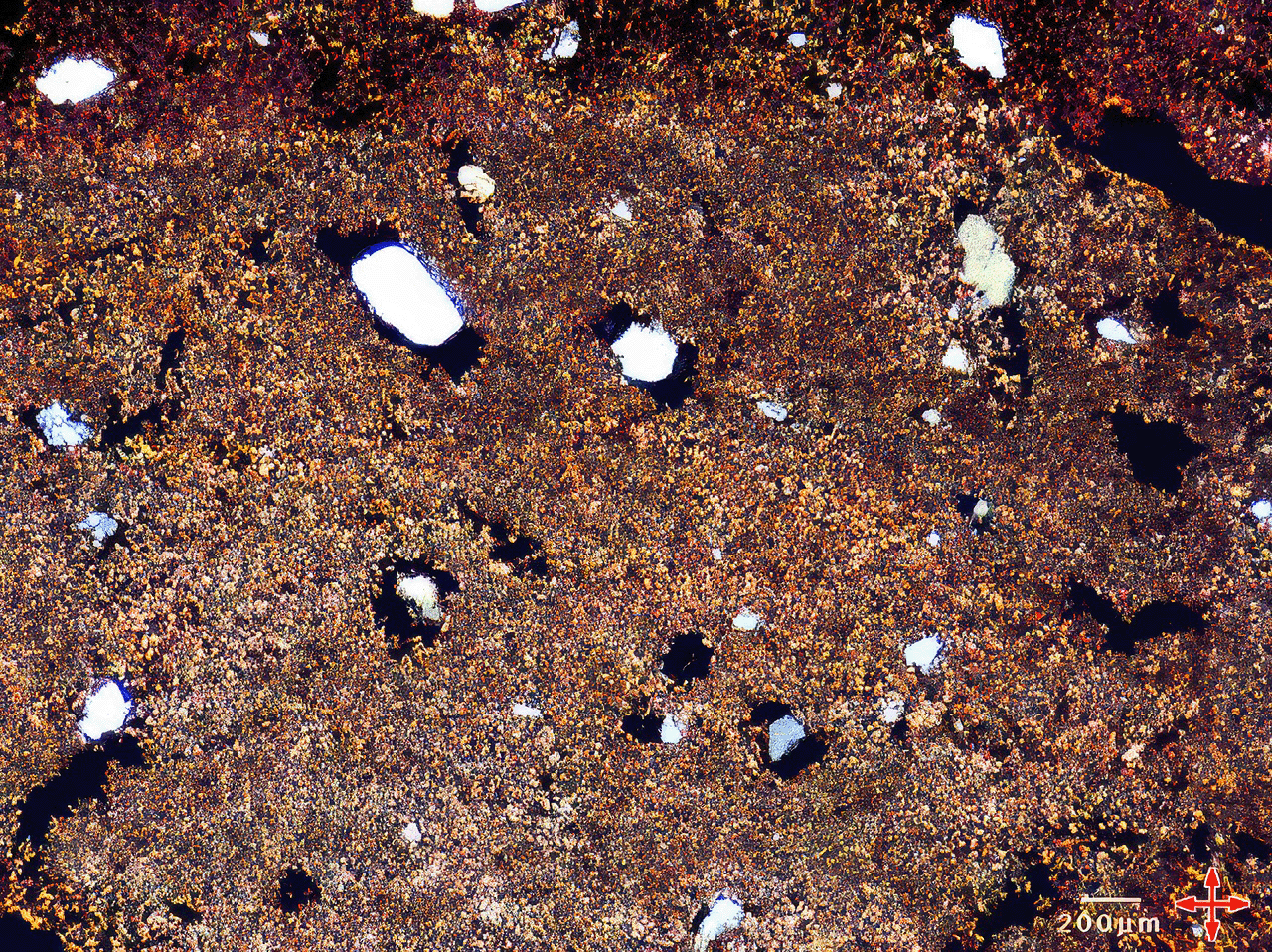 Estos rasgos son típicos de los suelos áreas áridas y estos poros se atribuyen a la disolución (congruente) del cuarzo y de los feldespatos.