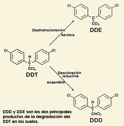 Este proceso es común para plaguicidas organoclorados, y es una de las etapas de degradación del DDT. En general el proceso es el siguiente: