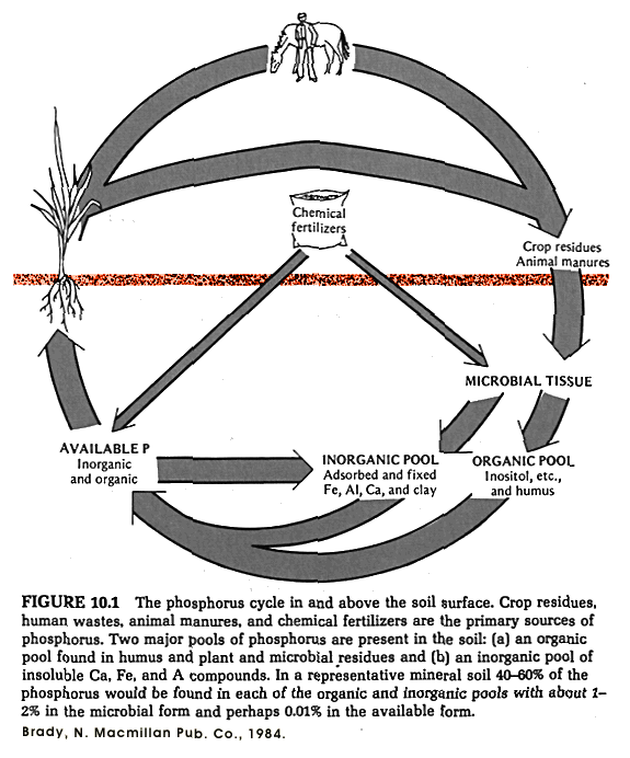 El ciclo del fósforo en el suelo se esquematiza a continuación.