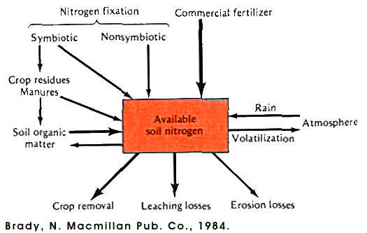 El nitrógeno asimilable procede de diversas fuentes y está sometido a pérdidas por diversos mecanismos.
