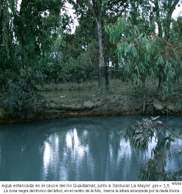 Por su extremada acidez las aguas llevaban disueltos numerosos metales pesados en cantidades considerables, alcanzando una altura considerable.