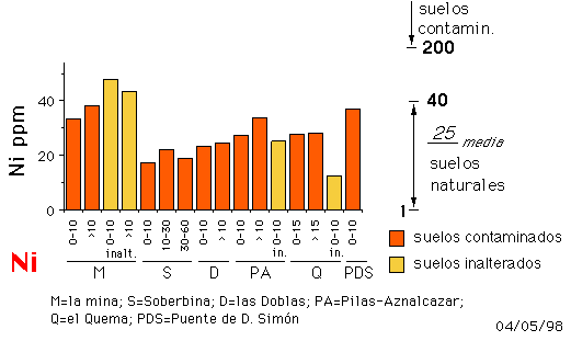 En definitiva, teniendo en cuenta la concentración en los suelos contaminados frente a los no contaminados y la peligrosidad de los contaminantes, en este vertido se ha producido una contaminación, fundamentalmente de seis metales pesados y elementos asociados: As, Zn, Pb, Cu, Cd y Tl.