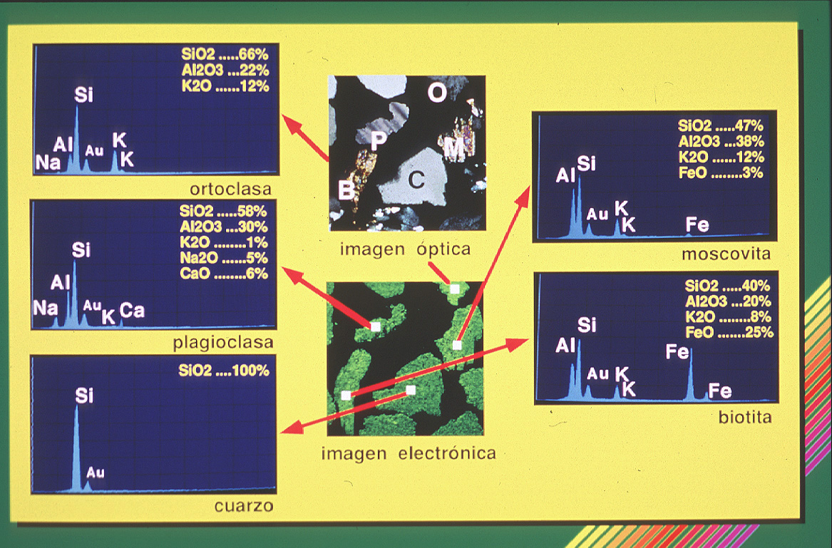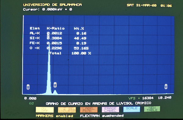 Imágenes directas de la pantalla del microanalizador. Análisis puntual.