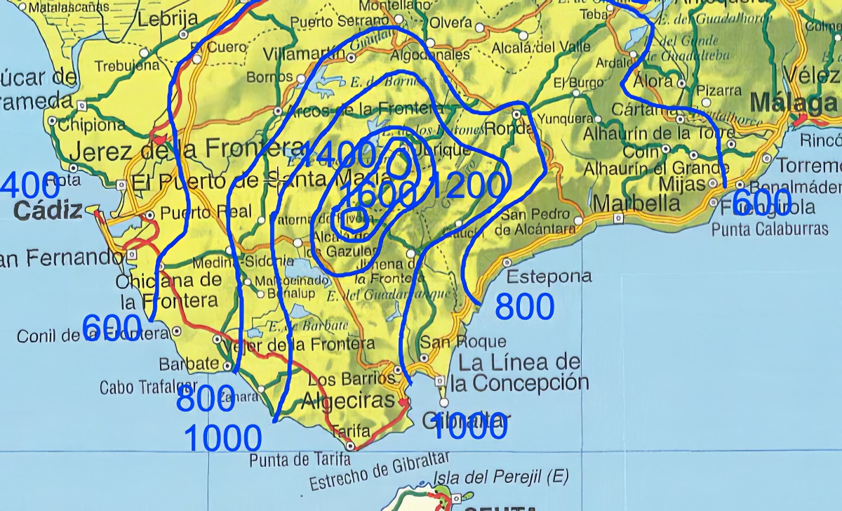En la provincia de Cádiz, al este cerca del límite de la provincia de Málaga, en las sierras de Ubrique y del Aljibe, existe un gradiente de pluviosidad de 1.200 mm (va desde los 400 mm anuales hasta los 1.600 mm). La litología está constituida por materiales sedimentarios carbonatados con predominio de calizas, margocalizas y margas. De entre todos estos posibles materiales originales vamos a prestar atención a una climosecuencia de suelos desarrollados sobre calizas.
