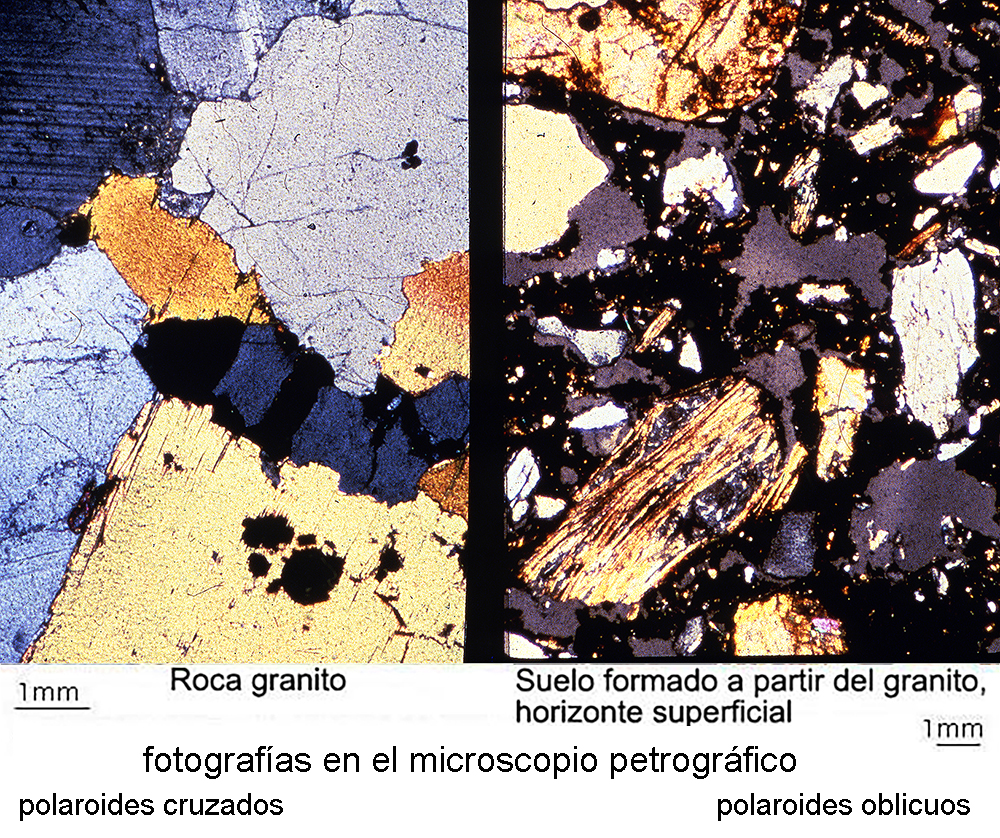 Los cambios que hemos mostrado en todas estas fotografías son muy espectaculares, al tratarse de la edafización (formación del suelo) de una roca ígnea, como en el caso del granito, y por tanto, con mineralogía, textura y microestructura muy diferentes de las que presentan los suelos; sin embargo, si el material original es una roca sedimentaria, estos cambios desarrollados durante los procesos edáficos serán menos espectaculares.