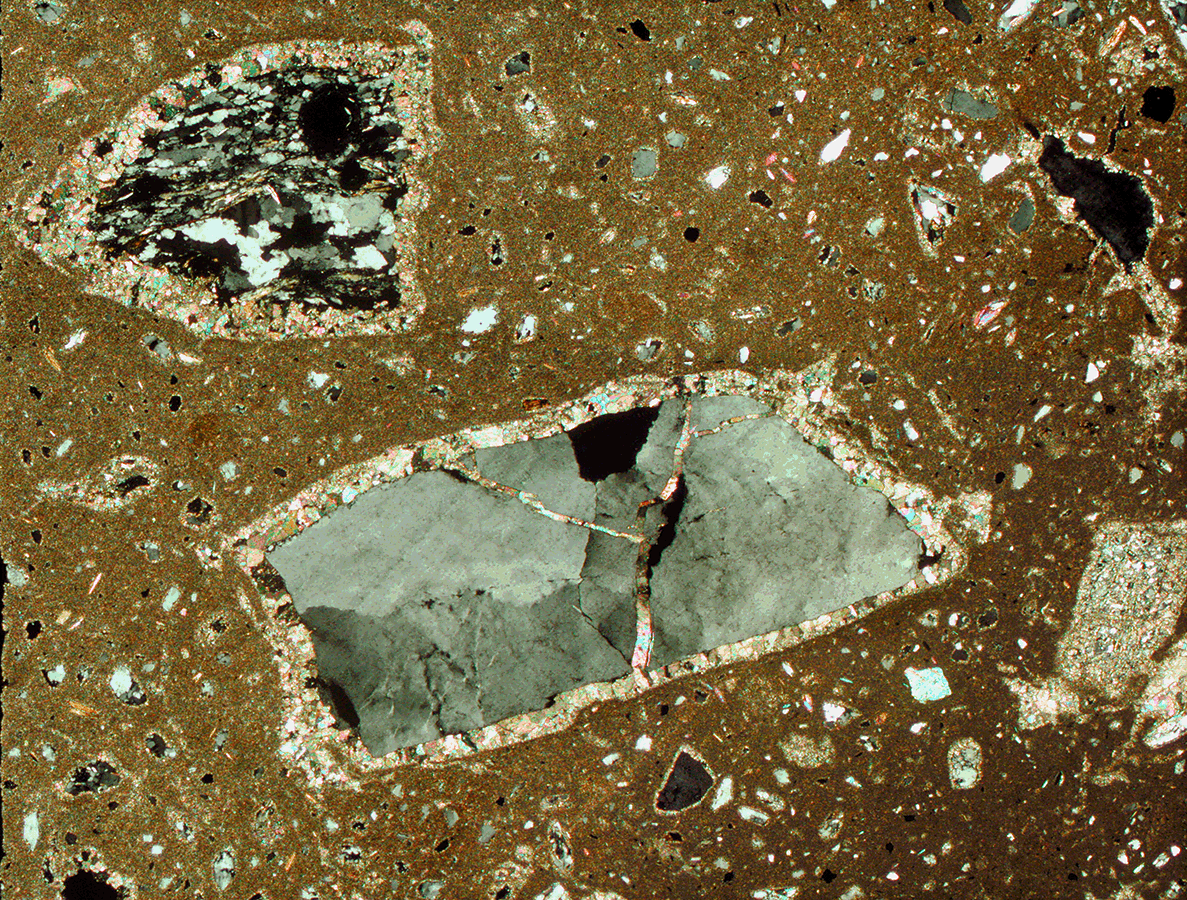 Algún lector curioso se puede plantear que ha pasado con los materiales del horizonte que habían antes de que llegaran los carbonatos. Una parte de los minerales primitivos se habrán destruido por la meteorización pero además los carbonatos son capaces de atacar y reemplazar a todos los minerales primitivos como los feldespatos, las micas e incluso un mineral tan estable como el cuarzo.