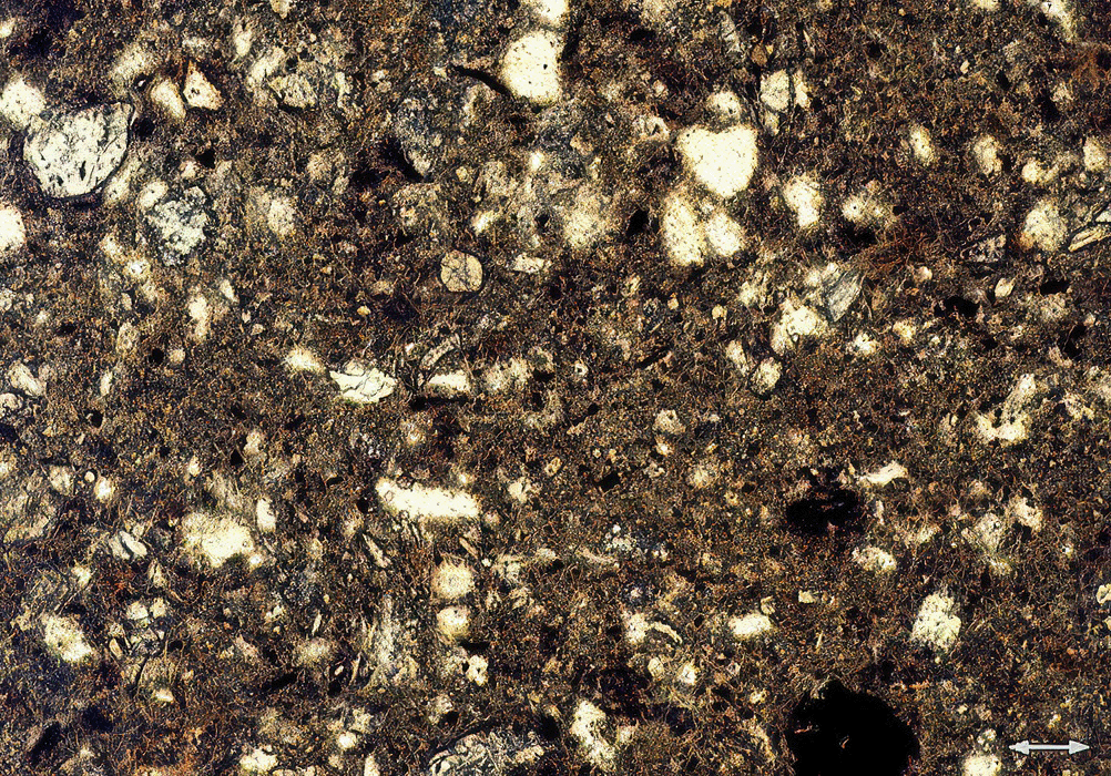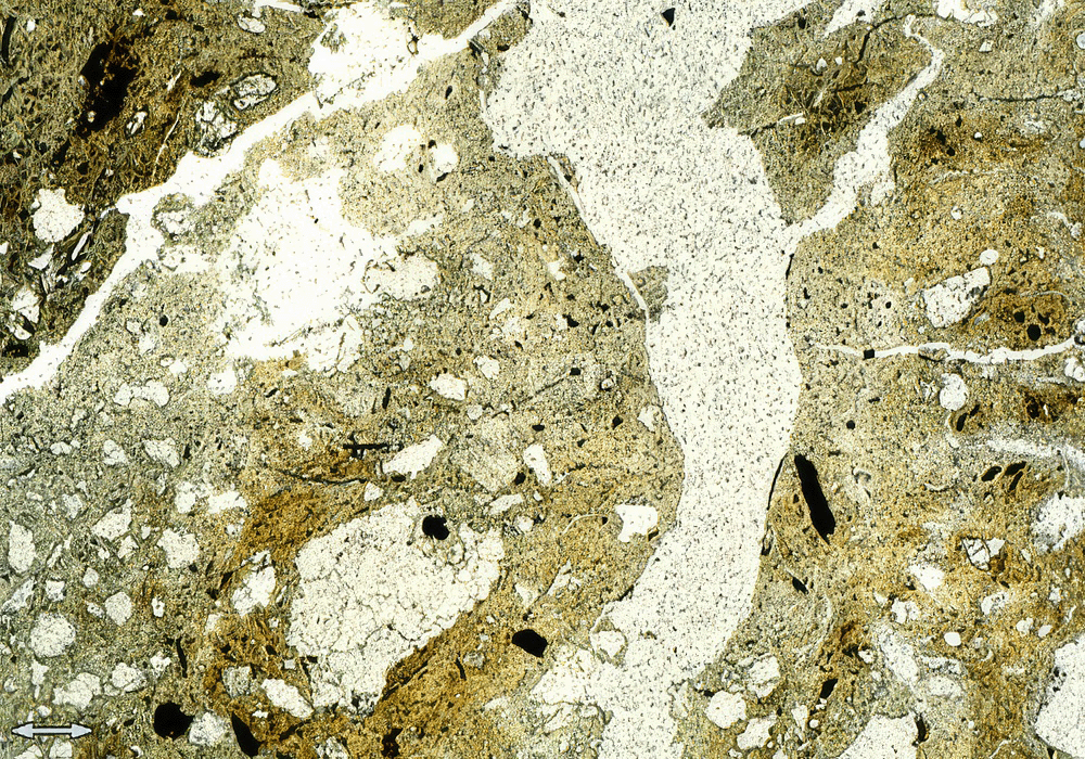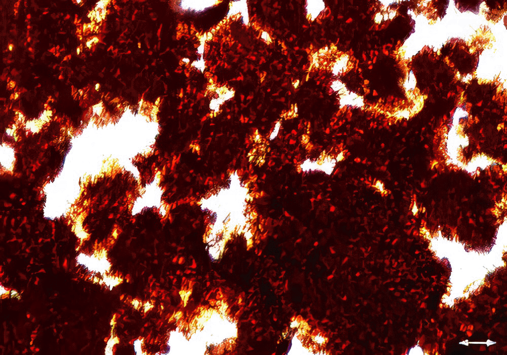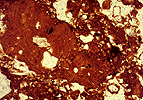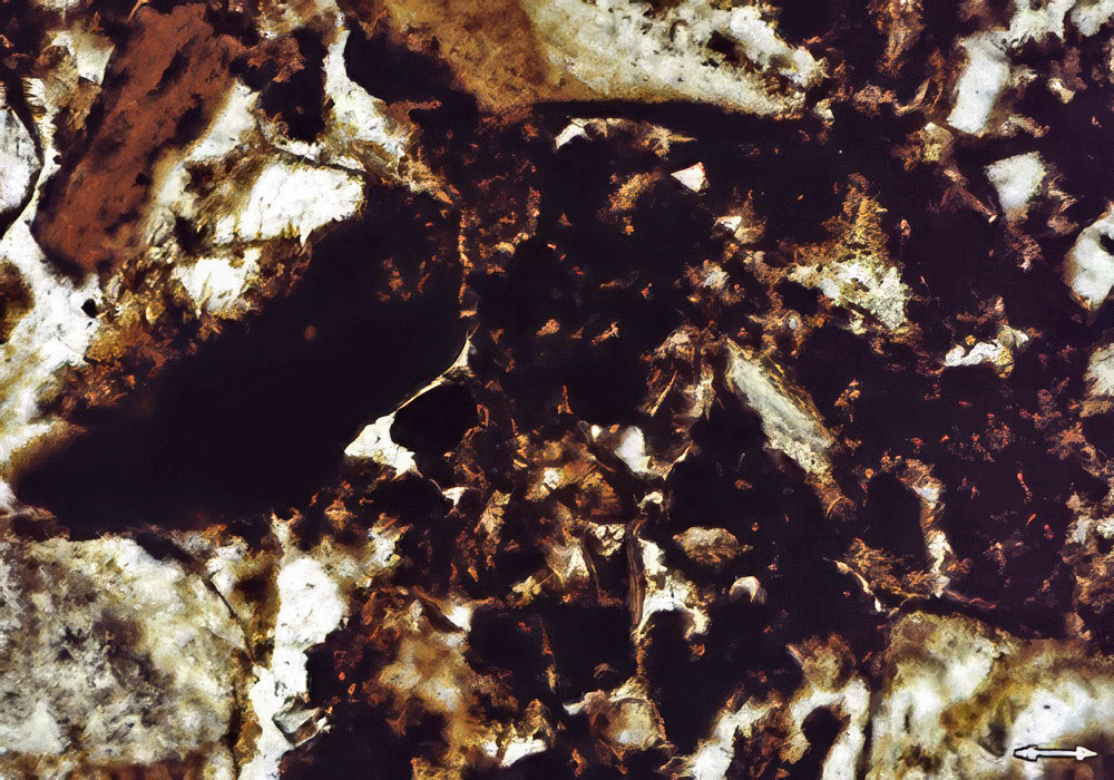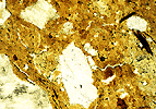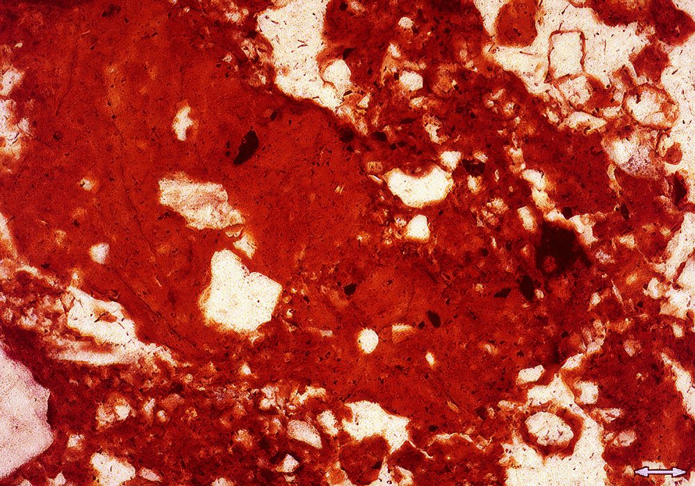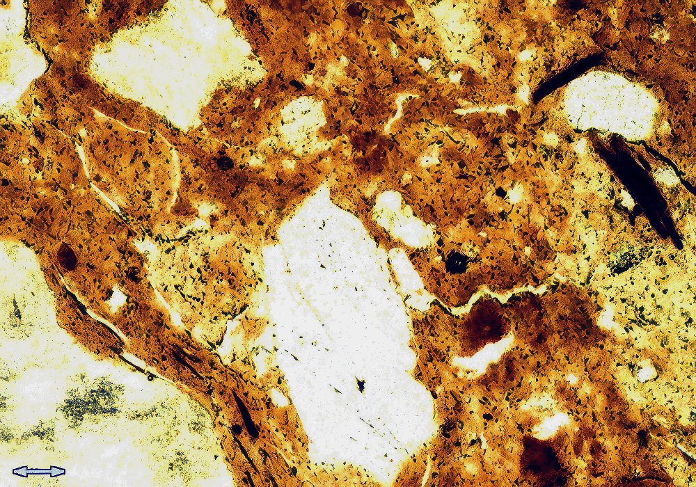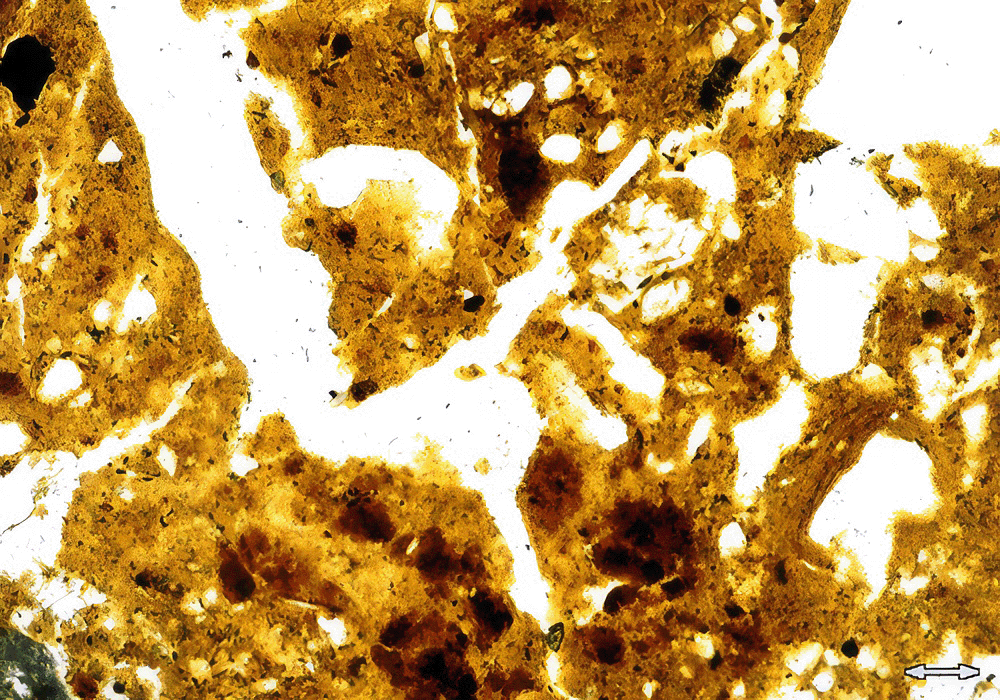 Yellowish reddish-brown. It indicates dispersed hydrated iron compounds, goethite and lepidocrocite.