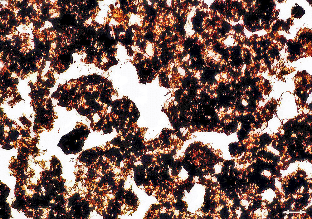 dispersed Fe compounds. Sometimes they are amorphous gels and very often they
