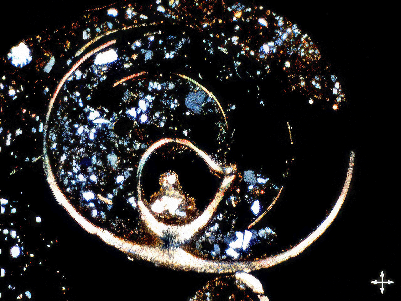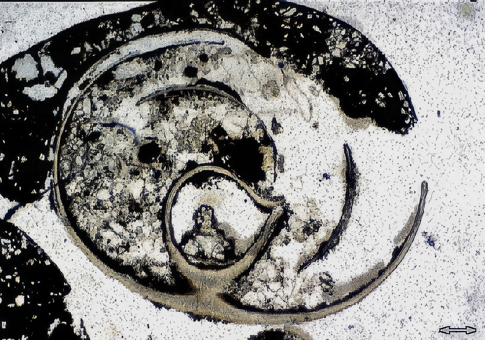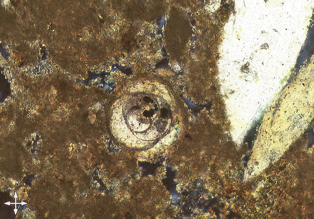Some vegetable tissues can be observed. They can be of calcic carbonate or calcic