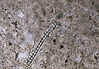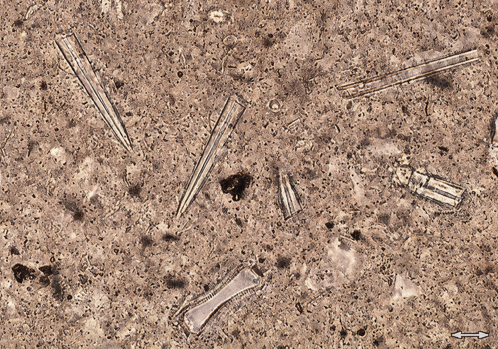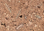 Sponge spicules. They are cylindrical bodies with a small channel inside.