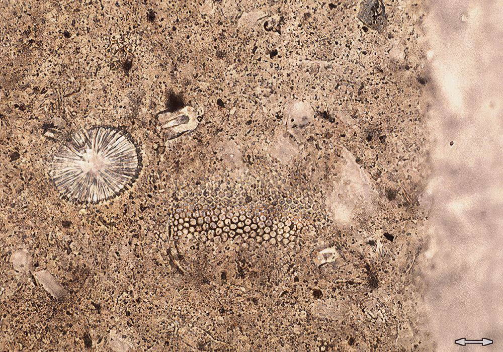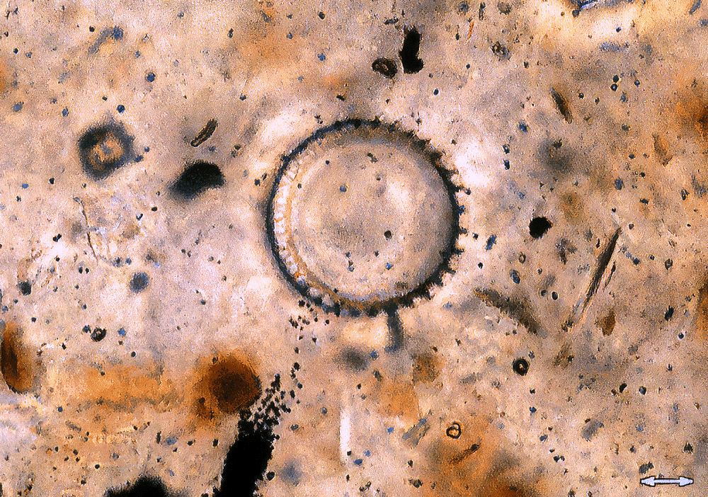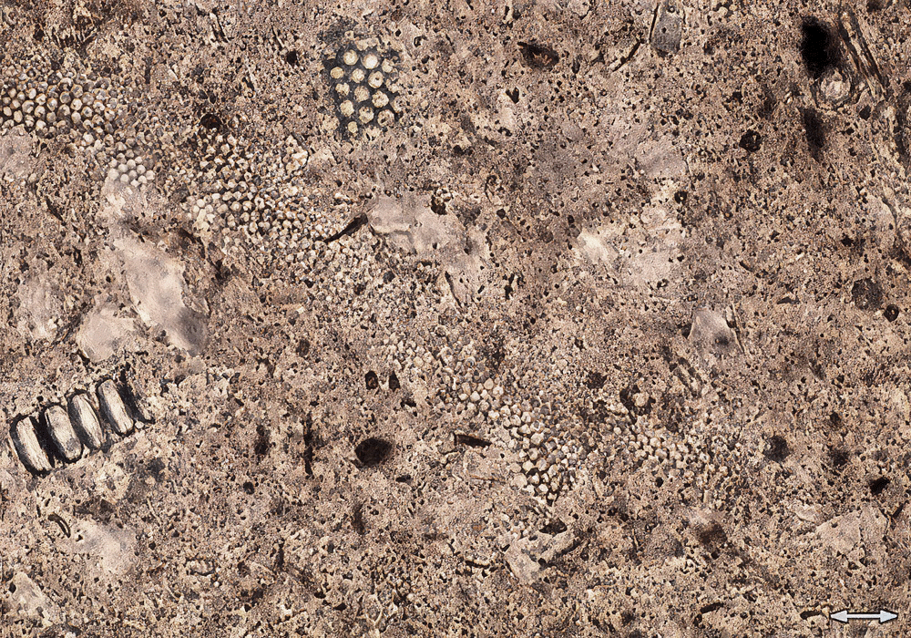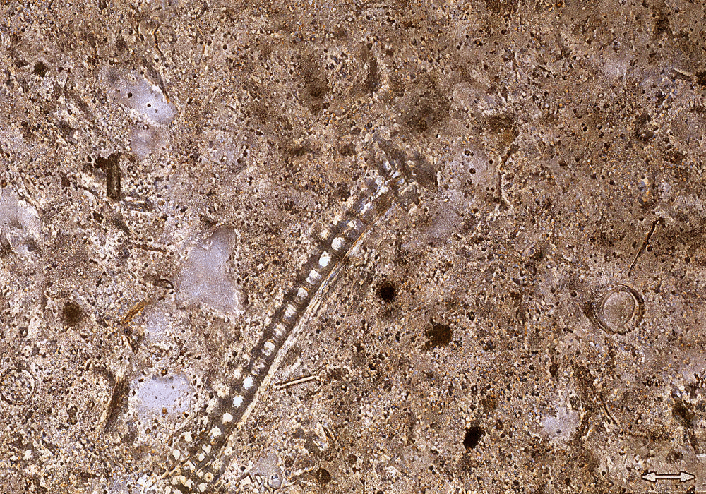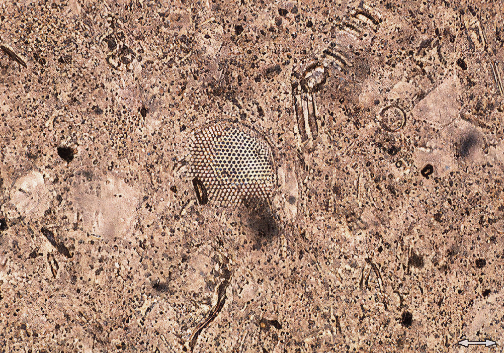 Radiolarians, shells, crystals of differents calcium salts and bones.