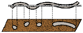 Por la misma razón uno raramente ve granos de esqueleto en contacto con otros en láminas delgadas ya que el punto de contacto está la mayoría de las veces situado fuera del plano de la sección de corte. Un empaquetamiento cerrado de granos de arena gruesa aparecerá en lámina delgada como un enjambre de granos aislados que se presentan a cierta distancia unos de otros.