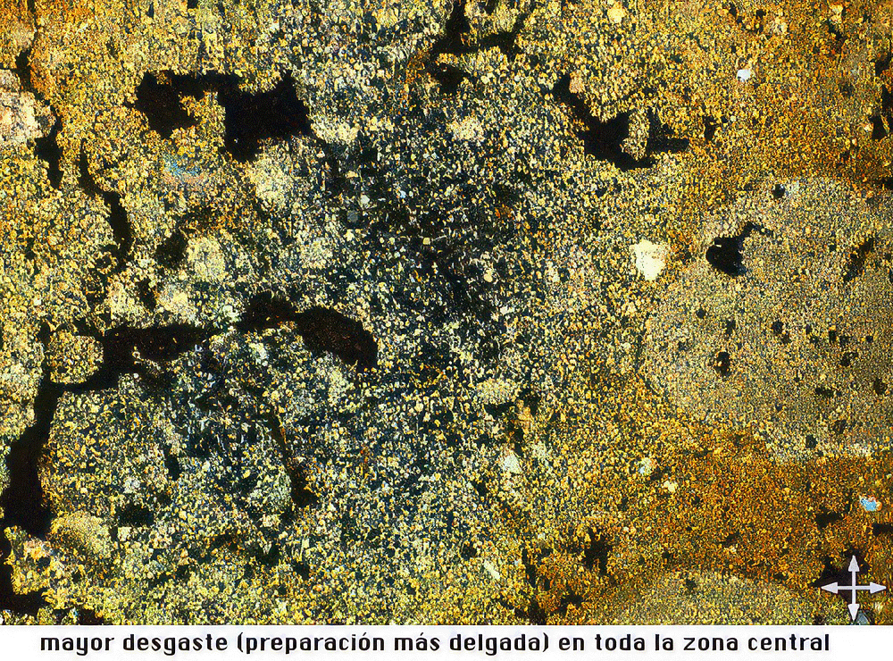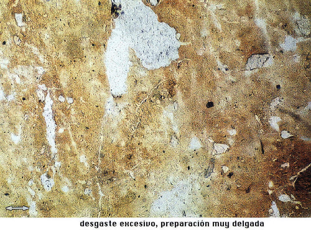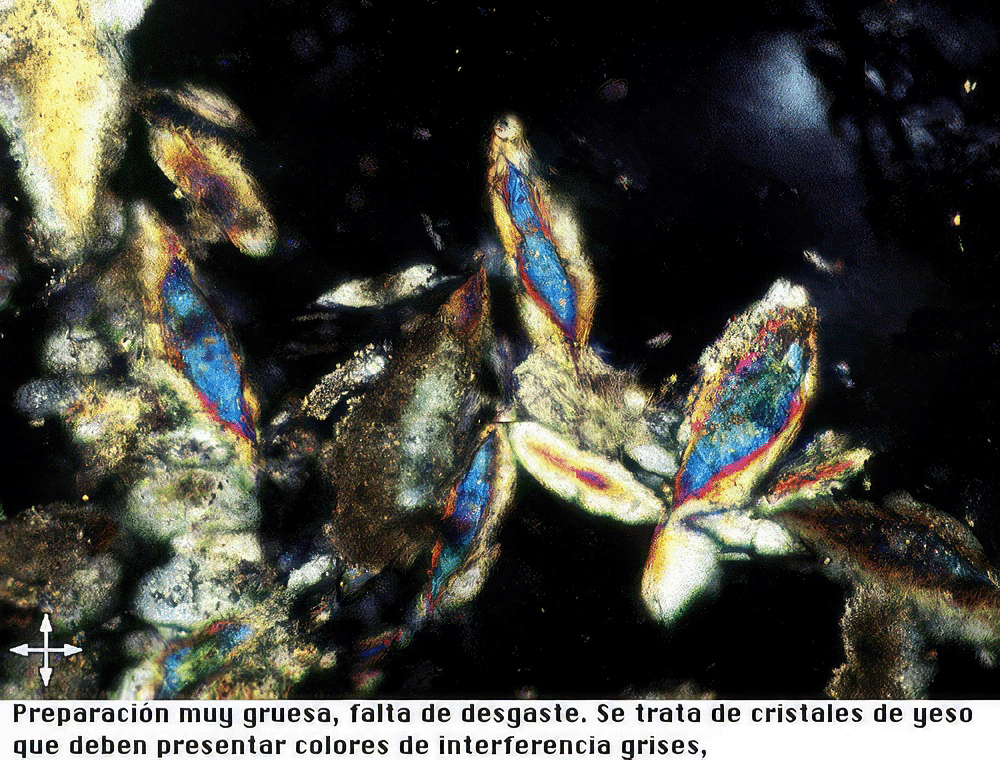 El espesor de las preparaciones microscópicas (láminas delgadas) debe estar entre 20 y 30 micras para que las propiedades ópticas de los minerales se manifiesten correctamente. En ocasiones el espesor de la preparación es demasiado grueso o demasiado fino.