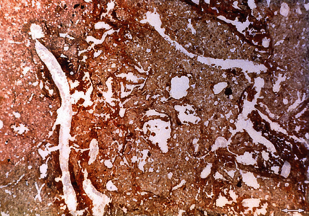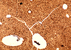 Channels. Tubular, with generally smooth walls, due to the biological activity