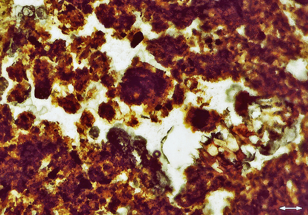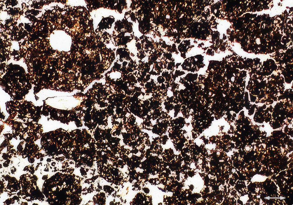 Due to the size of the aggregates, they are very difficult to see in thin