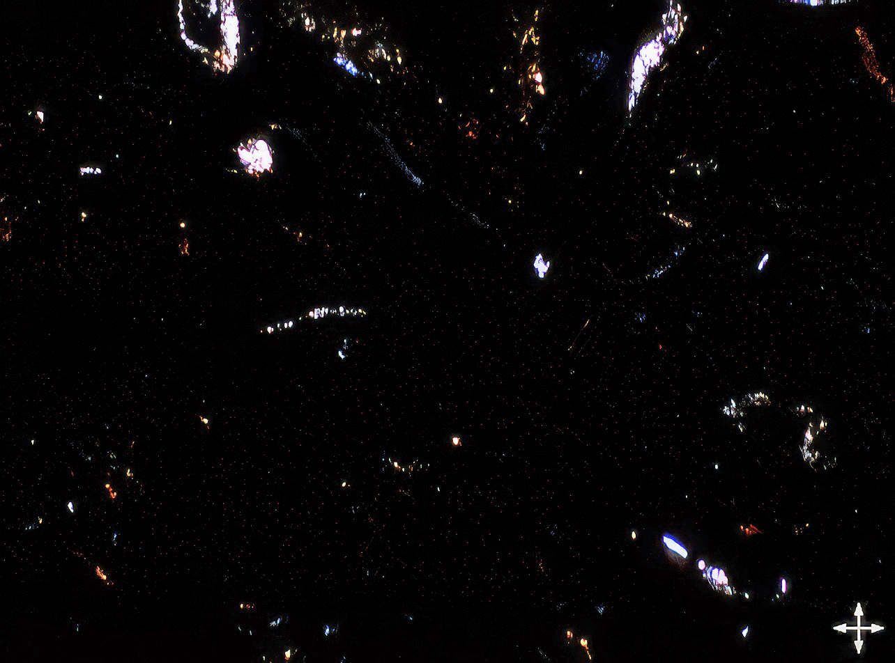 they progressively transform into an amorphous material with a colour that gets darker and darker (losing the initial birefringence)