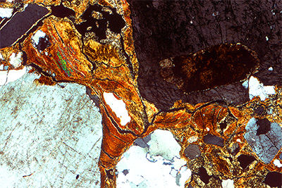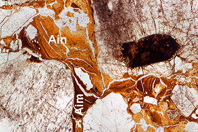 Después de navegar en estas imágenes debería haber encontrado, al menos, los siguientes rasgos (la imagen de la izquierda con sólo polarizador y a la derecha con nicoles cruzados).
