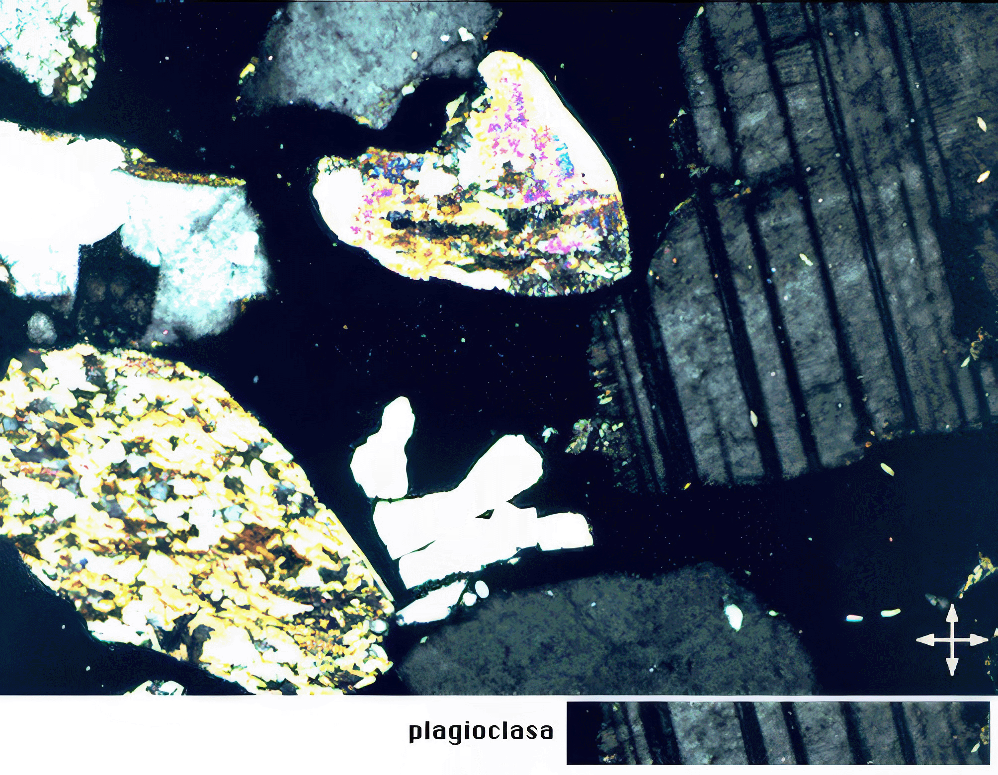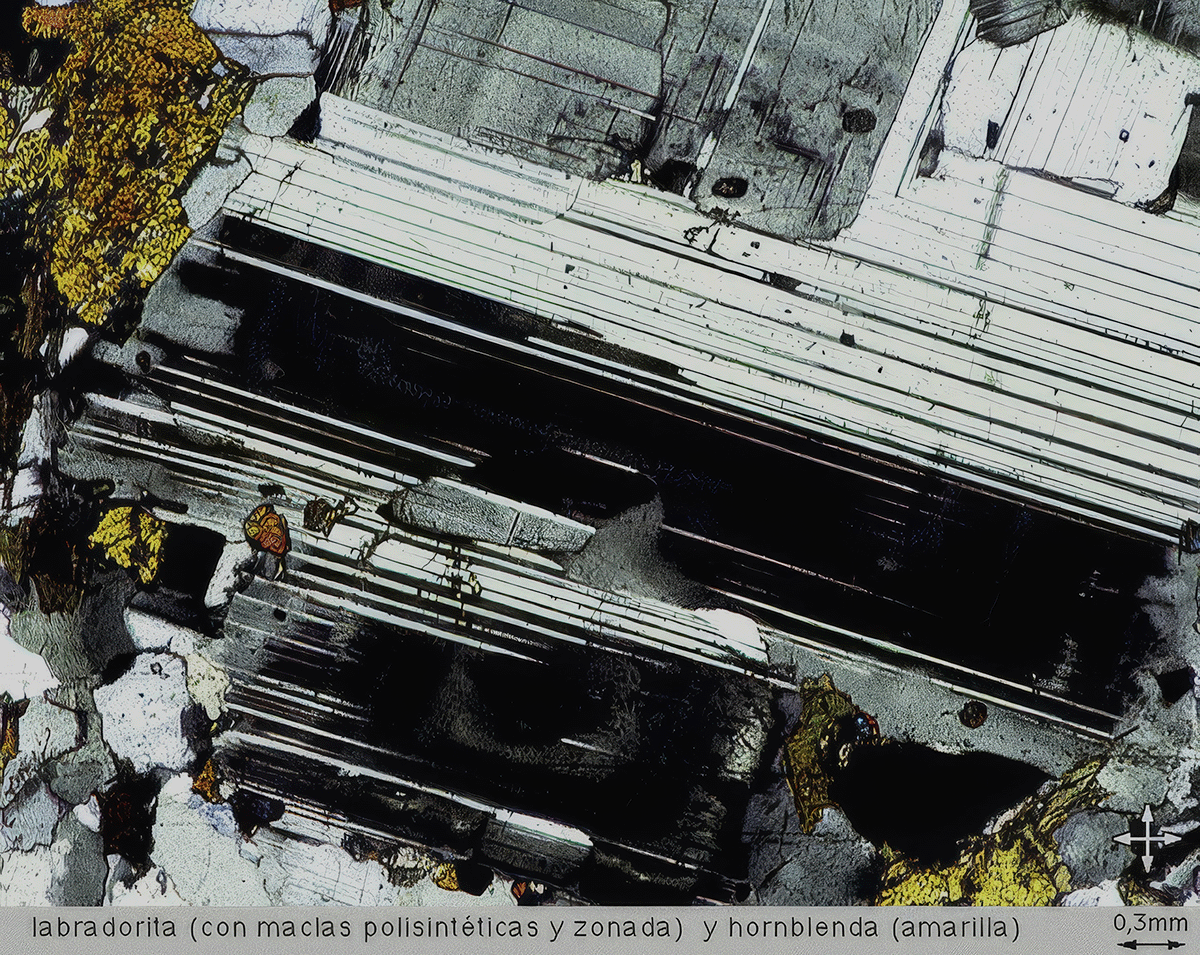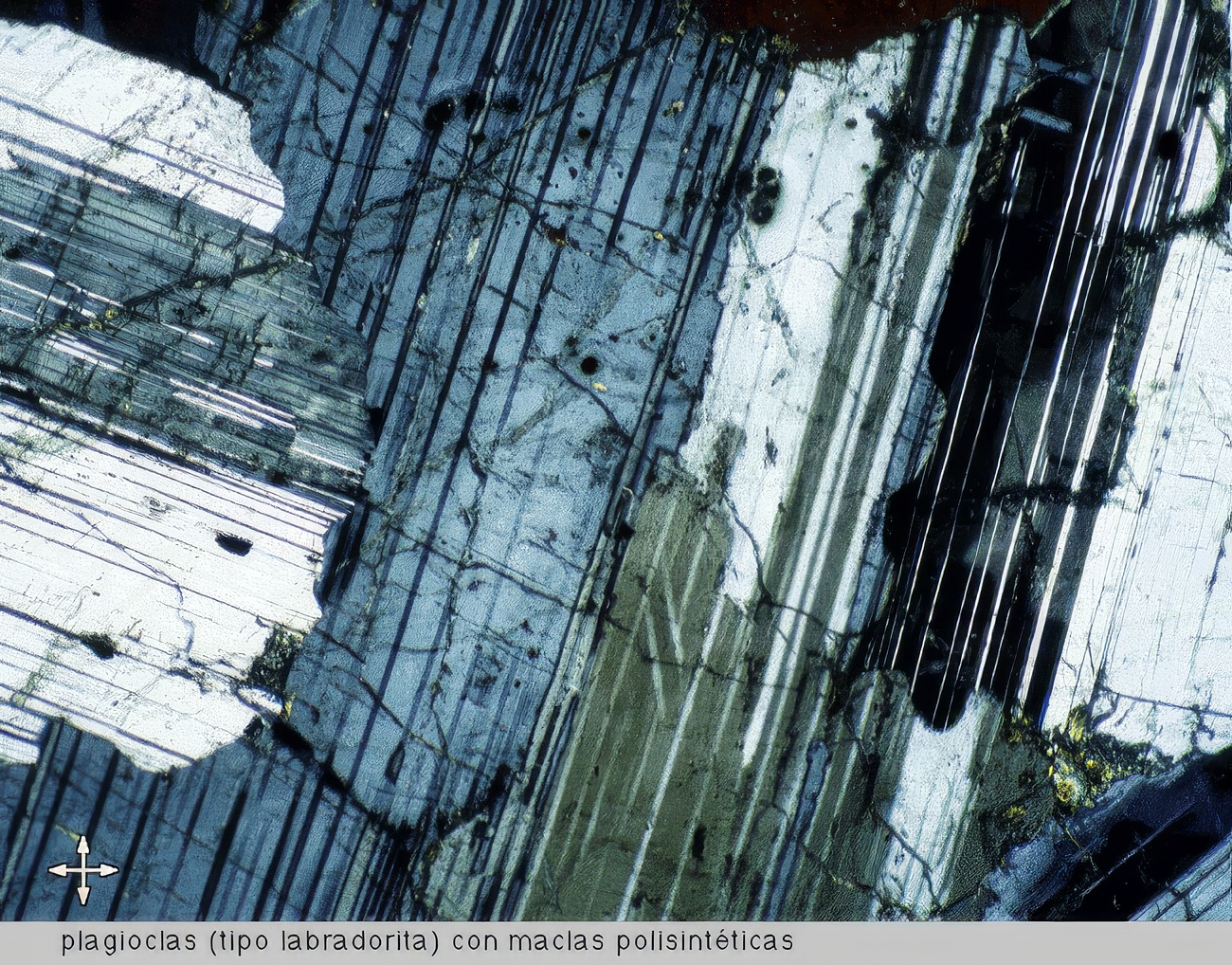 calcosódicos. Plagioclasas: con maclas polisintéticas laminares.