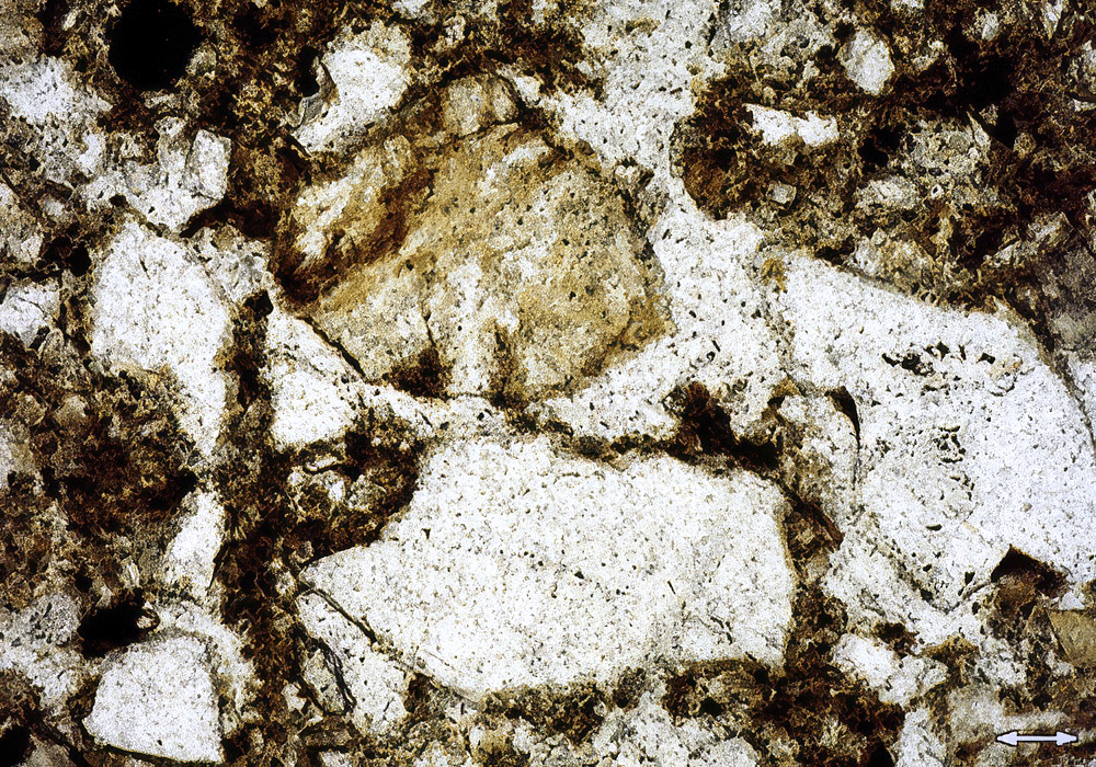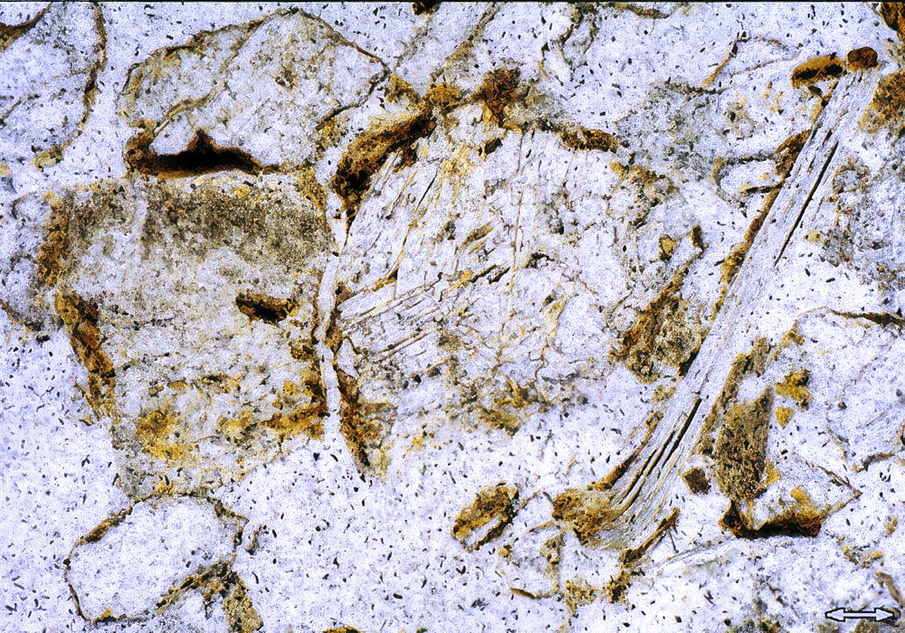 Solo polarizador: incoloros, sucios (por las alteraciones), con exfoliaciones perpendiculares poco manifiestas (predominando una dirección), relieve bajo, a veces con hábitos prismáticos.