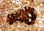 El problema de los nódulos (como en el caso de los cristales) es la interpretación de su origen. Estos nódulos que mostramos más arriba si pensáramos que no se han formado en el suelo pasarían a ser considerados como fragmentos gruesos. ¿Complicado?, pues no demasiado, bastaría con que miremos en las preparaciones de la roca (material original) si existen o no este tipo de nódulos (se recomienda disponer de varias láminas delgadas de la roca madre para estar seguros de su presencia o ausencia).