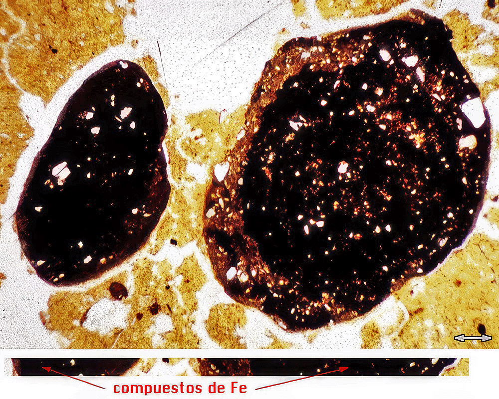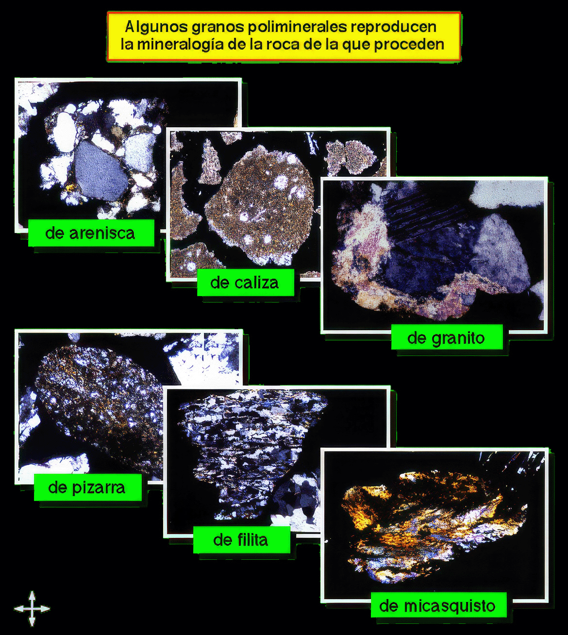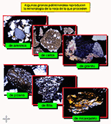 Algunos granos poliminerales de gravas (y algunas arenas) conservan la mineralogía y la microestructura de la roca.