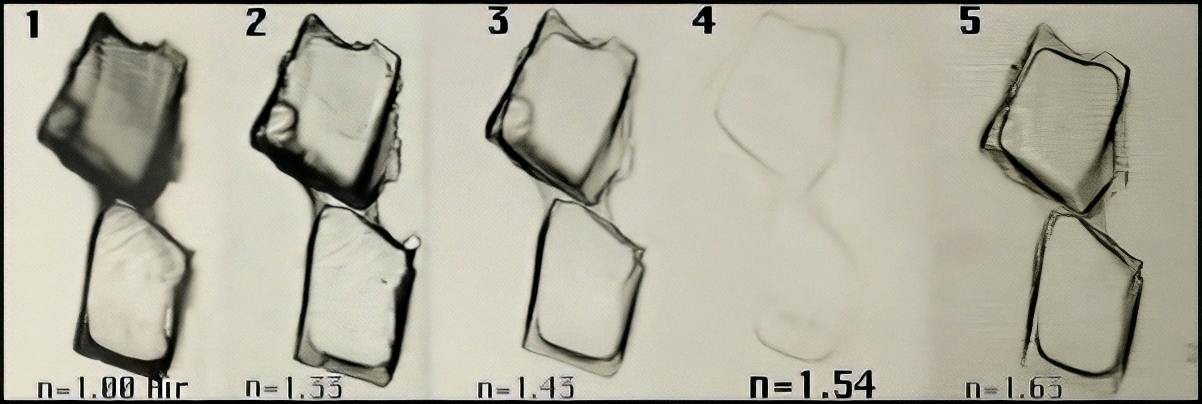 When a mineral is immersed in liquids with a different refractive index, its relief will change even if it remains in the same position.