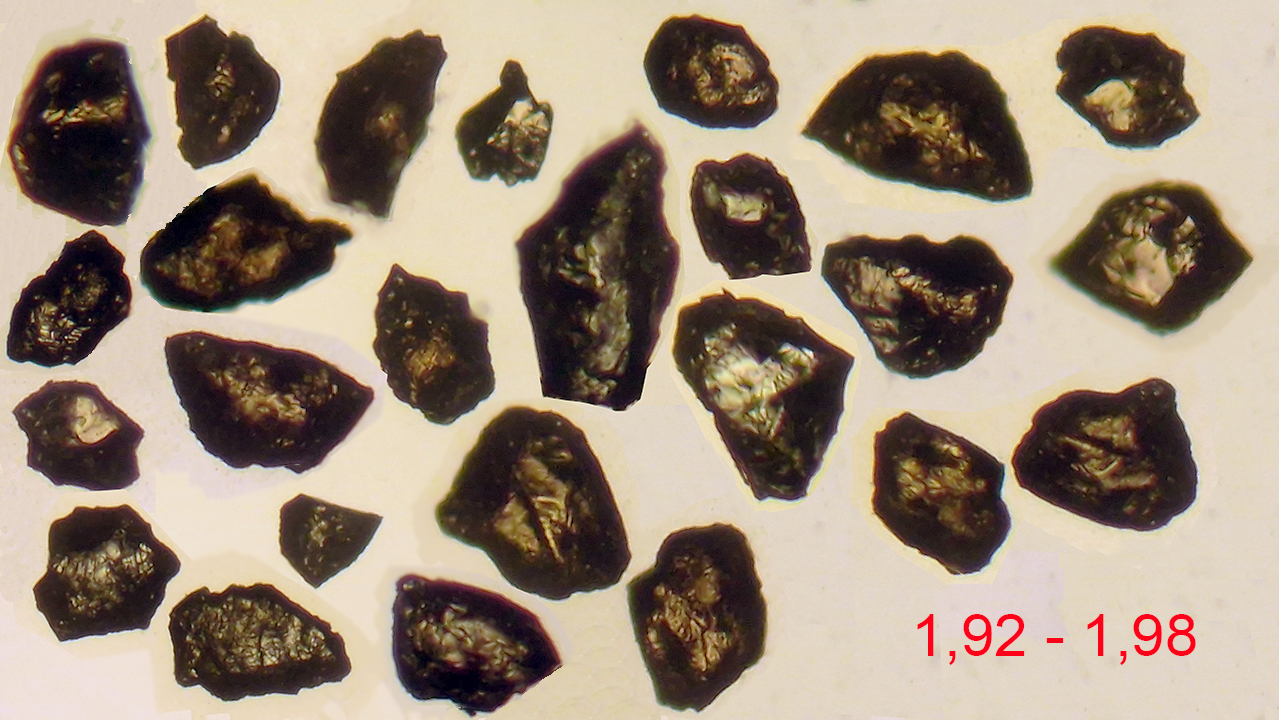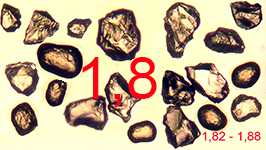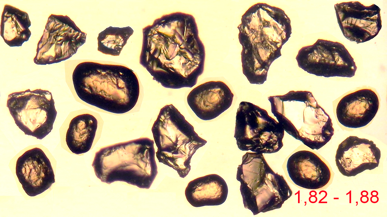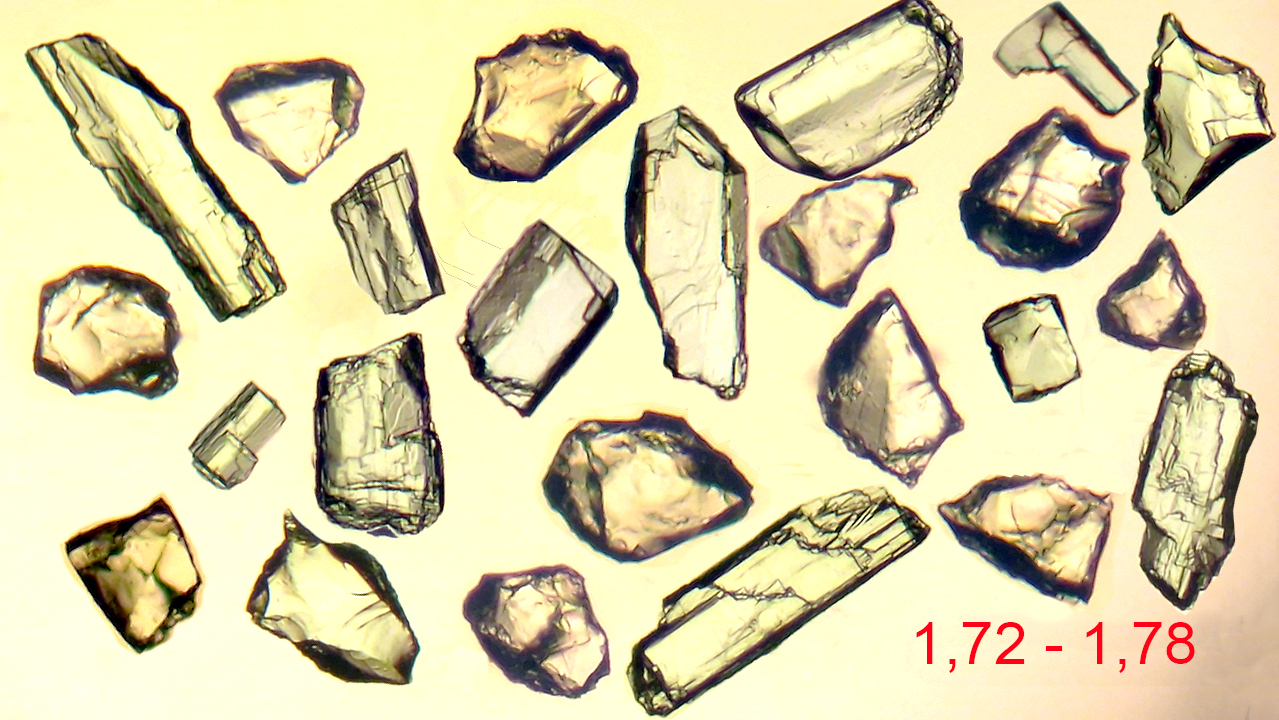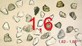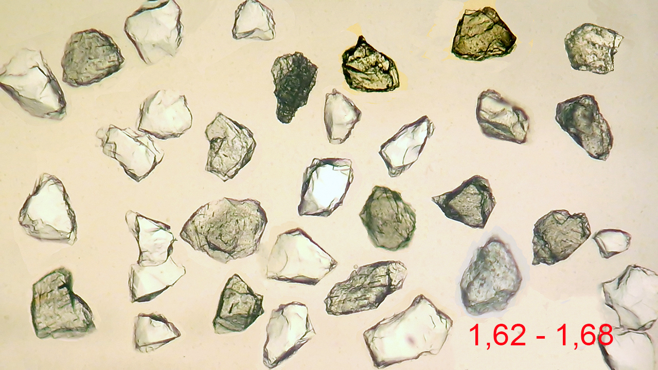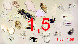 By pressing the images you can observe mineral grains with refractive indices ranging between the margins indicated.