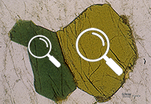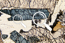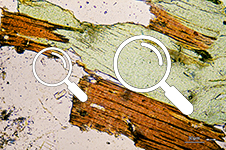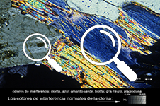 | XPL.Chlorite abnormal interference color: Blue | PPL. Chlorite natural color: green |