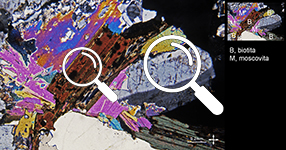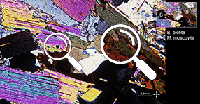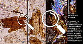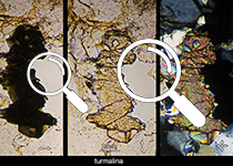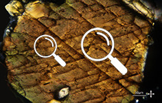 The interference colour is observed under the petrographic microscope with the analyser incorporated (in crossed-polarised light, XPL) and with parallel light (without the condenser).