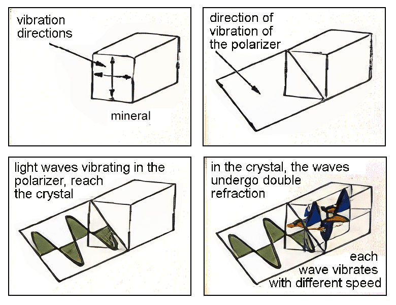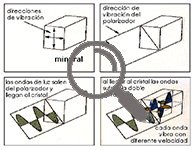 When the light ray arrives at the crystal, the wave stimulates the crystal's atoms and because it cannot vibrate in the direction in which it arrives (PP´), it divides into two waves which vibrate according to the two possible planes of vibration (XX´and YY´ in figure 2).