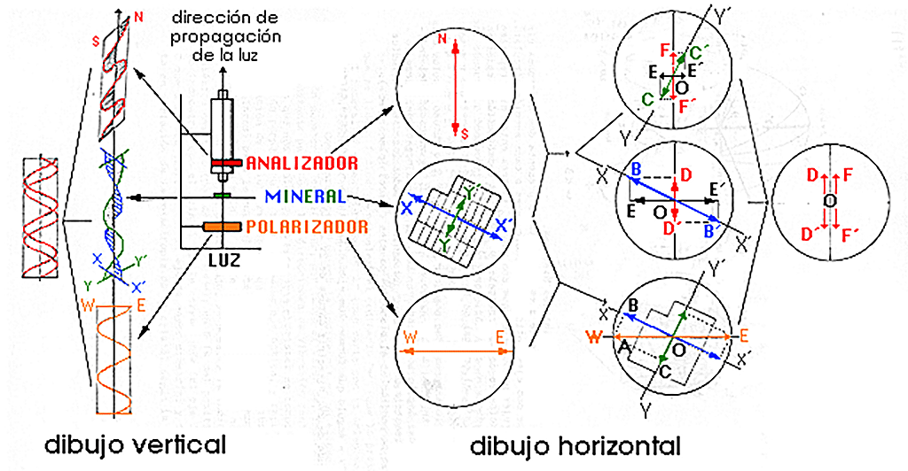 En el mineral las ondas sólo pueden vibrar en dos direcciones, representadas por XX' e YY'.
