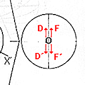 Como resultado, al final tenemos dos ondas (DD' y FF') vibrando en la misma dirección (la del analizador) y propagándose con idéntico camino. Como consecuencia estas dos ondas tienen que interferir y su interferencia será positiva (refuerzo) o negativa (sustracción) dependiendo de su diferencia de fase (retardo), la cual dependerá de la diferente facilidad de vibración (elasticidad) de los átomos para cada una de las direcciones de vibración del cristal (es decir, cómo de birrefringente sea para esa posición).