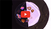 In the figure, we have only used two polarising plates whose planes of vibration are perpendicular. The upper one (which acts as an analyser) only covers the left hand-side, meaning that on the right, the grains appear with their natural colour, whilst on the left we can see the interference colours. The latter are totally different from the natural colours (right). The interference colours vary from one part of the grain to another, due to the fact that it does not have a uniform thickness.