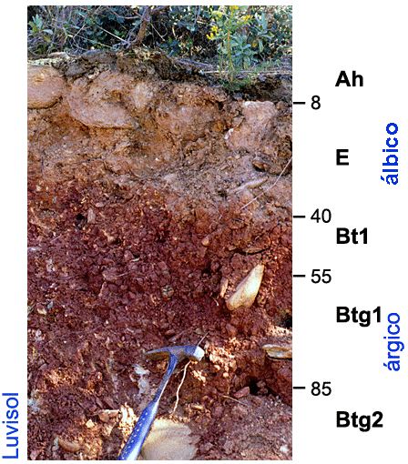 Se trata de un Luvisol (árgico + arcillas de alta actividad + saturación en bases)