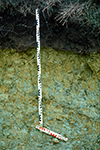 2. Tamaños contrastantes de arenas.--Se pueden detectar cambios significativos en el tamaño de las arenas. Por ejemplo, si el material contiene principalmente arena media o arena fina que se superpone abruptamente a un material que contiene principalmente arena gruesa o arena muy gruesa, se puede asumir que existen dos materiales diferentes. Aún cuando, los materiales puedan tener una mineralogía similar, el tamaño contrastante de las arenas es el resultado de una diferencia en las energías en el momento de su depositación por agua y/o por viento.