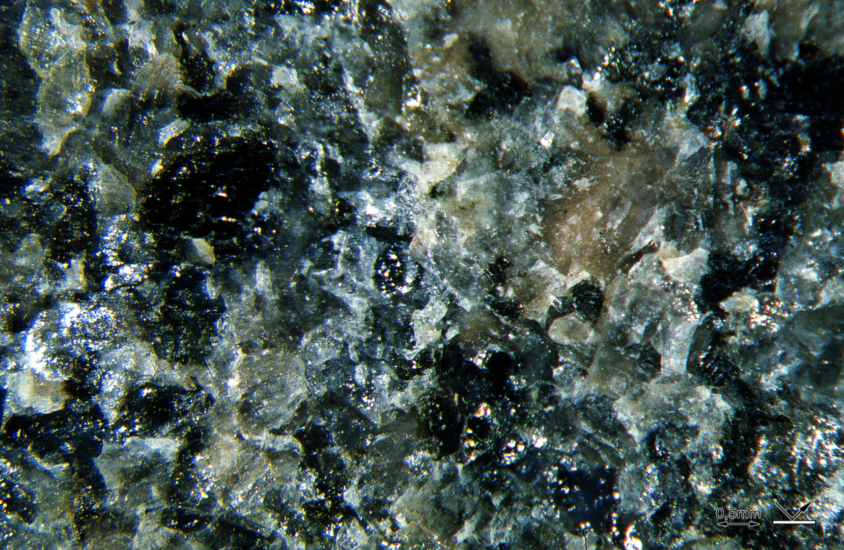 Granodiorita. Esenciales: cuarzo, feldespato potásico (microclina y ortosa), plagioclasa, hornblenda y biotita. Accesorios: clorita, apatito, circón, esfena y magnetita.